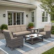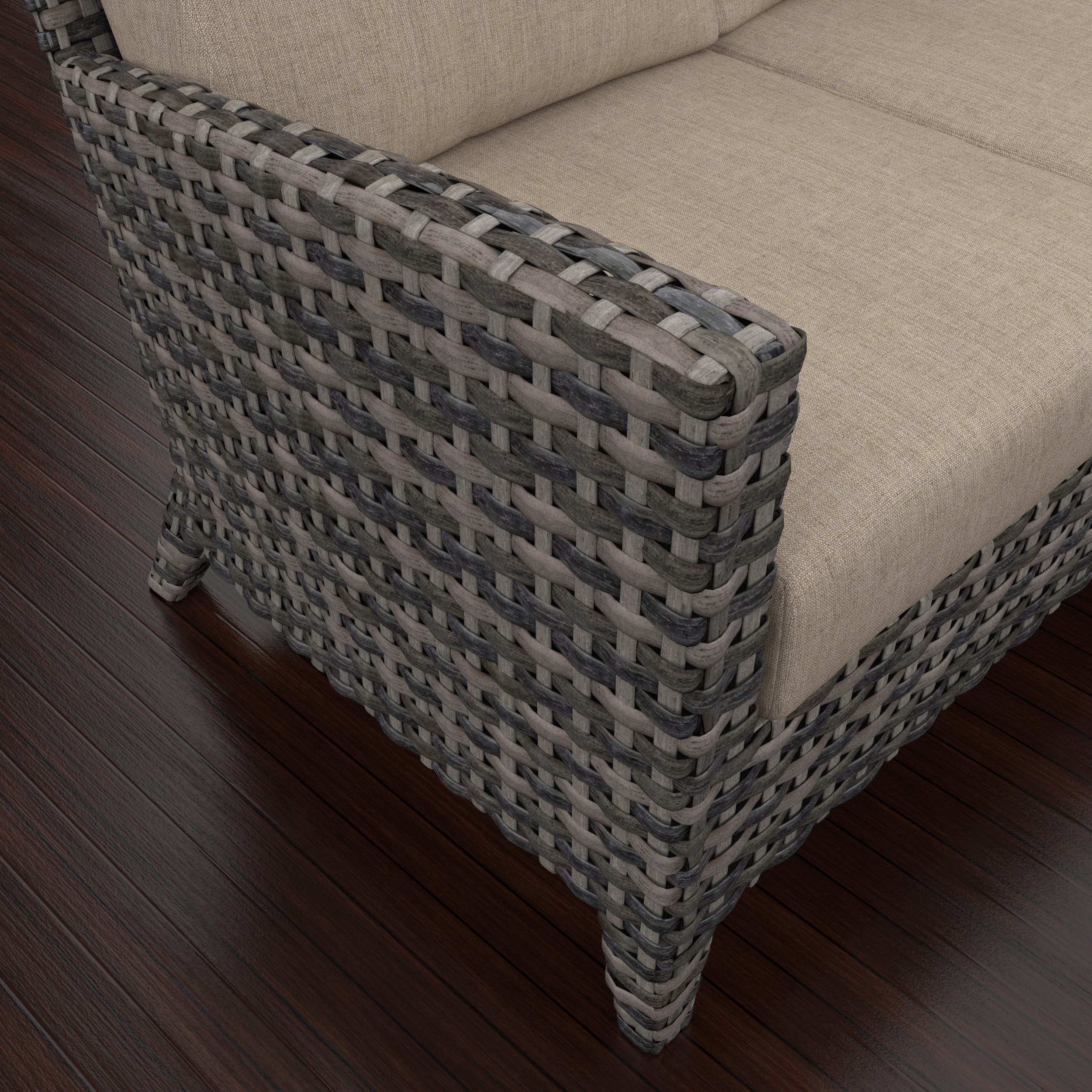 Plush Sunbrella cushions add soft support while resisting moisture, mildew, and fading. Whether you are hosting guests or enjoying a peaceful afternoon, this outdoor wicker sofa set is built for lasting beauty and daily ease. Durable, stylish, and versatile, the Cavalier set is your new favorite spot beneath open skies.