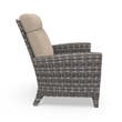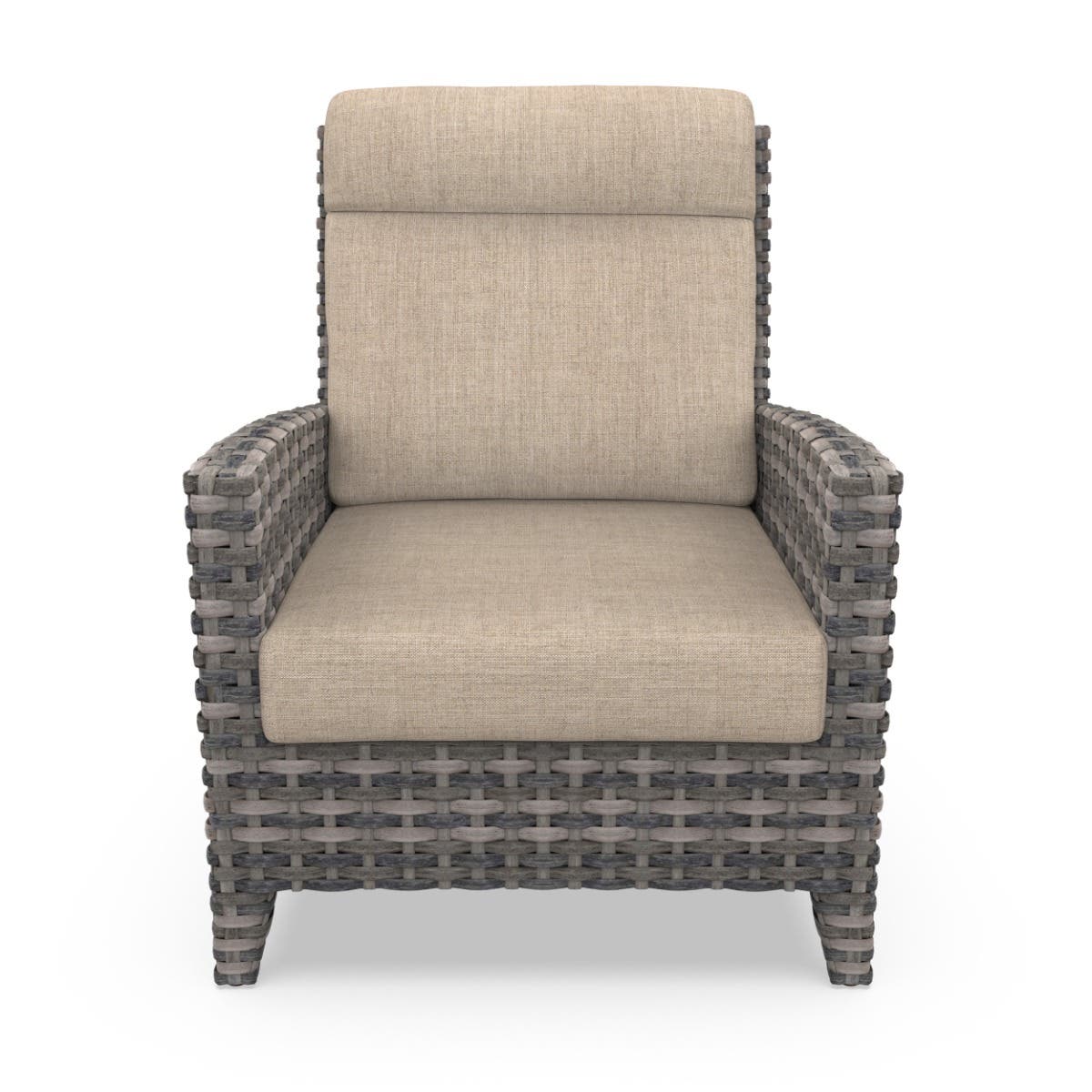 Settle into the quiet elegance of the Cavalier Patio Lounge Chair, where structure meets softness in perfect harmony. With its richly textured handwoven wicker in warm buff tones and a sculptural silhouette, this outdoor lounge chair brings depth and refinement to your alfresco retreat.