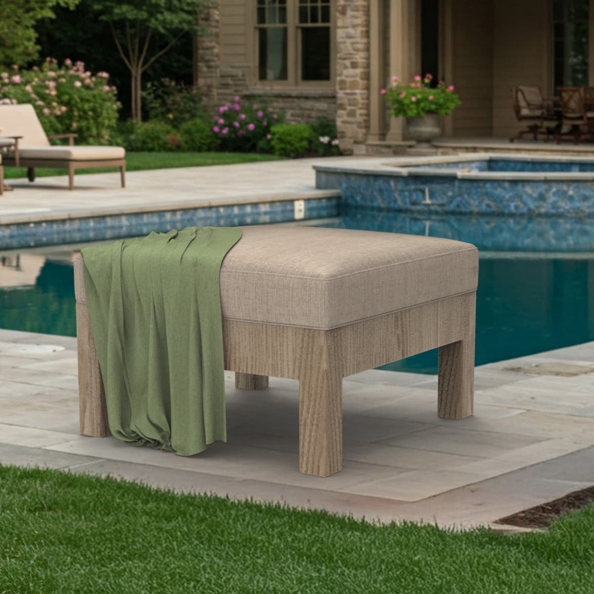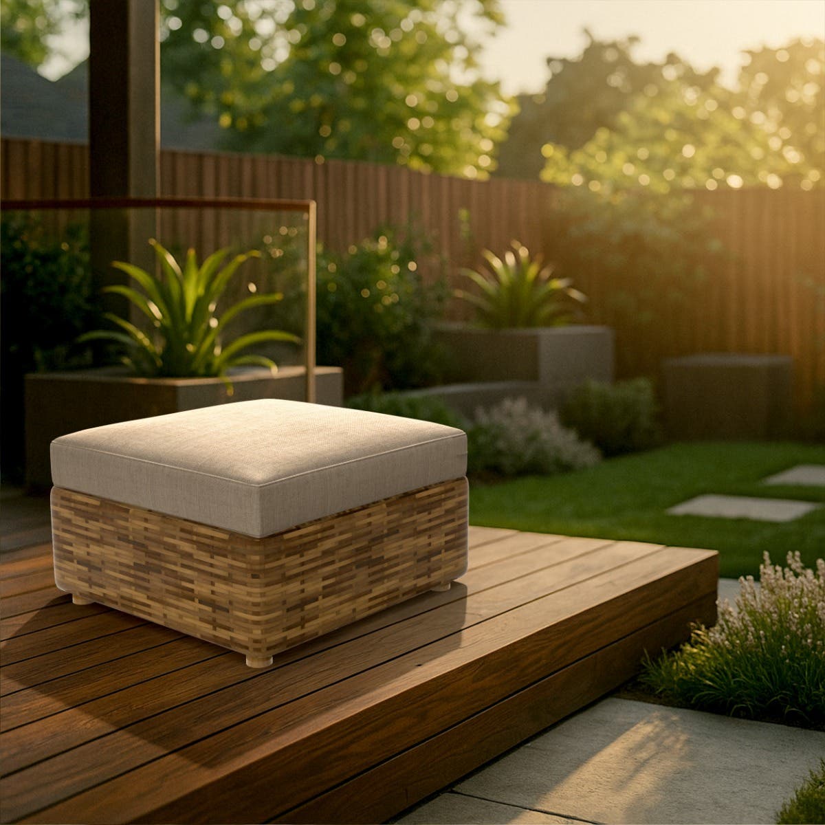 Crafted with care, each outdoor ottoman cushion is wrapped in weatherproof Sunbrella® fabric resistant to fading, mildew, and moisture, even on the brightest days. The inside features a structured foam core, wrapped in soft batting to create the perfect surface for resting feet, trays, or even little ones curled up with a book.
