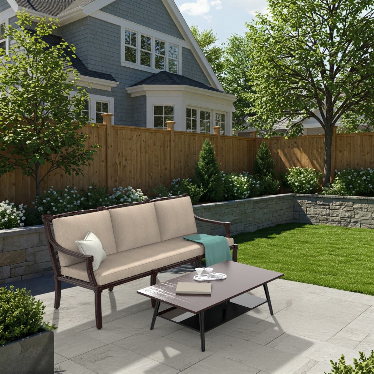 Each cushion is crafted with performance-grade Sunbrella® fabric, delivering lasting protection from UV rays, mildew, and unpredictable weather. The foam seat cushion holds its shape through heavy use, while the batting-wrapped back cushions bring softness and depth to your setup.