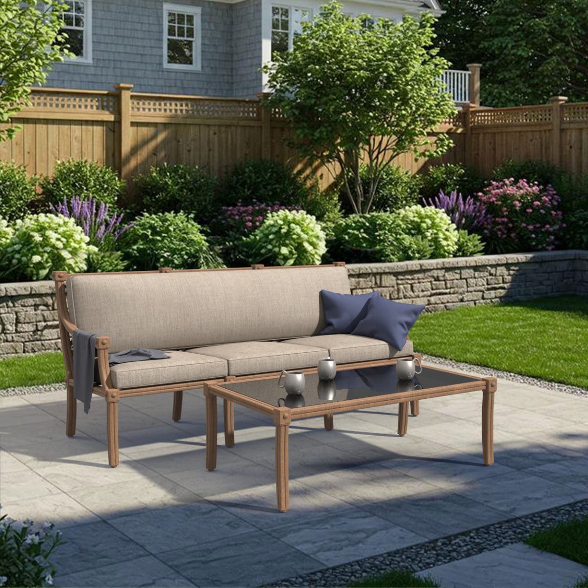 The Sunbrella® fabric exterior ensures these outdoor sofa cushions resist fading, mildew, spills, and everyday wear, while maintaining a tailored, upscale finish. Inside, supportive foam seat cushions meet a single, plush batting-wrapped back cushion that anchors your seating in softness.