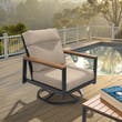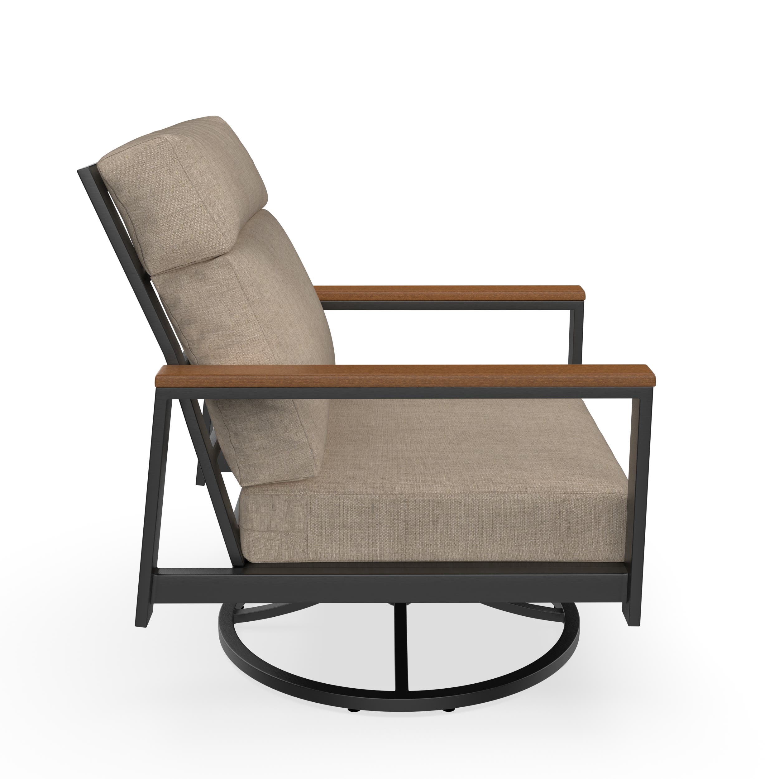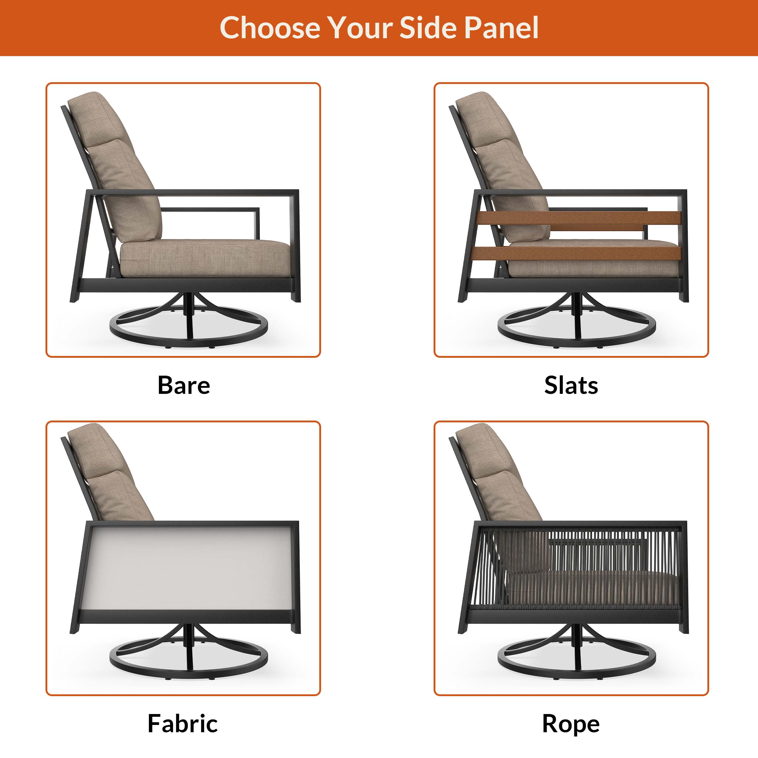 Enjoy the gentle motion of its swivel and rocking base while customizing its style to fit your space. Choose from side panel accents like handwoven rope, fabric wraps, or wood-inspired slats, then finish the look with your preferred Sunbrella cushion fabric - resilient against sun, rain, and daily wear.